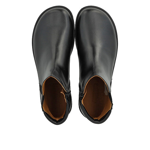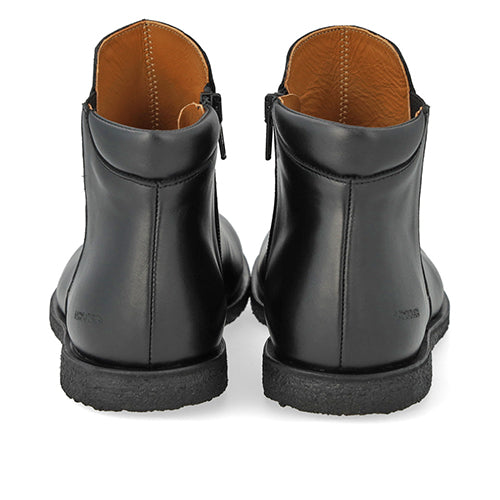Lækker ankelstøvle i glat skind med et smalt elastikpanel på ydersiden og en lynlås på indersiden af anklen. Bagerste halvdel af åbningen er polstret. Med en normal til bred vidde er der mere plads om forfoden. Indvendig har støvlen et kromfrit skindfoer. Indersålen er komfortabel, og ydersålen af FSC-certificeret rågummi er stødabsorberende. Fås i halve størrelser.