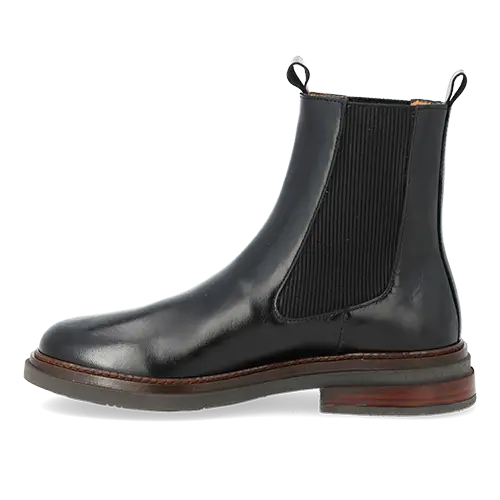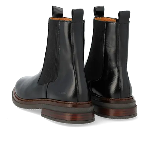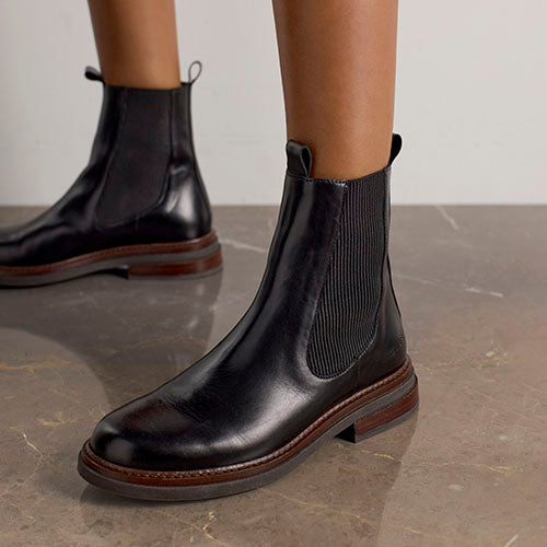 Lækker chelseastøvle med en overdel af glat skind med rund snude og elastikpaneler på siderne af anklen samt to trækfaner. Støvlen har et tætsiddende ankelhøjt skaft, og indvendig har den et kromfrit skindfoer, så fodklimaet er optimalt. Indersålen er komfortabel, og gummisålen med dekorativ stikningsrand er stødabsorberende med et fint fodfæste. Designet i Danmark og håndlavet med kærlighed i Portugal.
