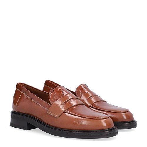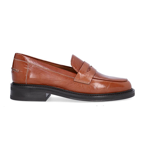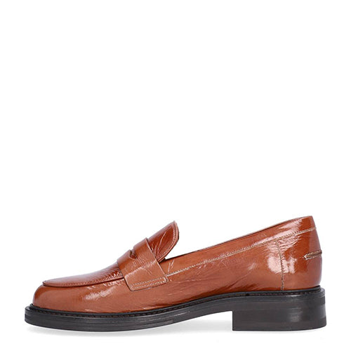 Flot pennyloafer med en overdel af lakskind dekoreret med den klassiske pennyloaferrem over forfoden. Indvendig har skoen skindfoer og giver dermed et godt fodklima, og ydersålen er stødabsorberende med et fint fodfæste. Her får du et par elegante loafers perfekte til hverdag og fest.