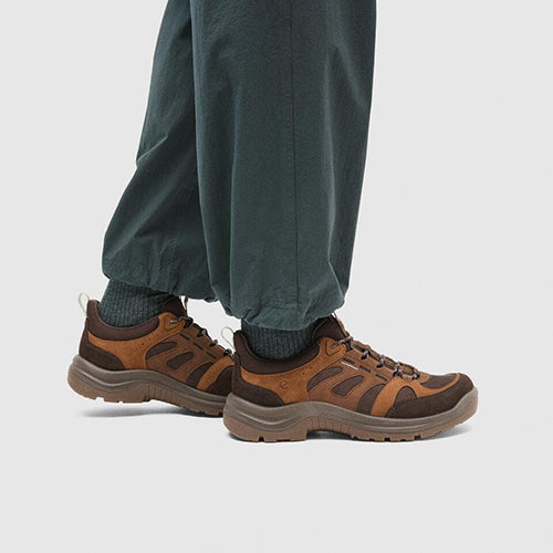 Praktisk og lækker Offroad W WP outdoor-sko til dine eventyr i naturen. Overdelen er af ECCOs kvalitetsnubuck med tekstil om åbningen og på pløsen. Indvendig er skoen udstyret med tekstilfoer samt en vandtæt og PFAS-fri ECCO WATERPROOF-membran, så dine fødder holdes behageligt tørre i vådt vejr. Skoen lukkes med snørebånd, og en trækfane på både hæl og pløs gør det nemt at træde i skoen. Åbningen er polstret for øget komfort, og den udtagelige indersål er også polstret og komfortabel. Den bløde og lette PHORENE™ mellemsål giver returenergi og affjedring, imens RECEPTOR®-teknologien tilbyder god fleksibilitet og stabiliserende zoner, som giver dynamisk støtte og komfort, fra du sætter fødderne på jorden, til tæerne slipper underlaget. Den indbyggede ECCO FLUIDFORM™ Direct Comfort-teknologi giver dig god komfort og fleksibilitet takket være den anatomiske pasform. Den robuste og slidstærke gummisål er stødabsorberende med et godt vejgreb.