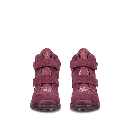 Superdejlig ECCO Urban Mini I High 2S GTX støvle perfekt til vintervejr. Overdelen er af ruskind og tekstil med en polstret åbning for øget komfort og beskyttelse, og indvendig har støvlen et varmt foer samt en åndbar og vandtæt GORE-TEX®-membran, så fødderne holdes varme og tørre. Støvlen lukkes med to justerbare velcroremme, og den udtagelige indersål er belagt med aluminium, som isolerer mod kulde. Det unikke mønster i den stødabsorberende ydersål giver forbedret fodfæste, imens ECCO FLUIDFORM™ Direct Comfort-teknologien sikrer en fleksibel og slidstærk sål, som giver små fødder i voksealderen den nødvendige støtte og komfort.