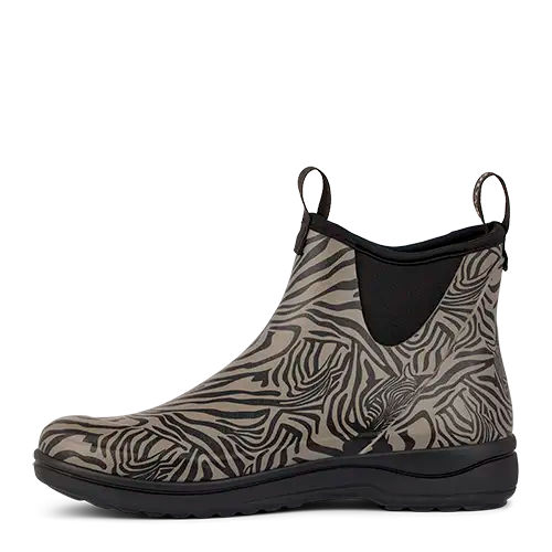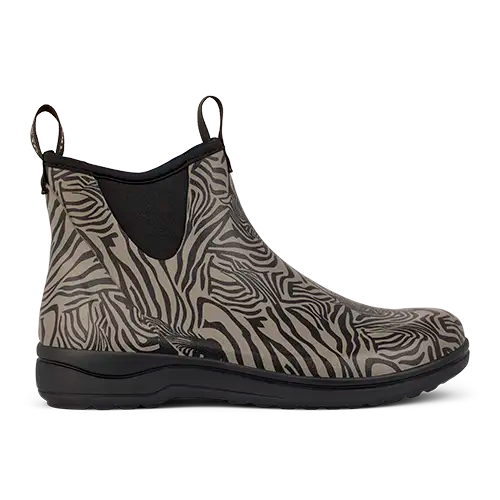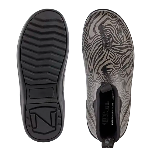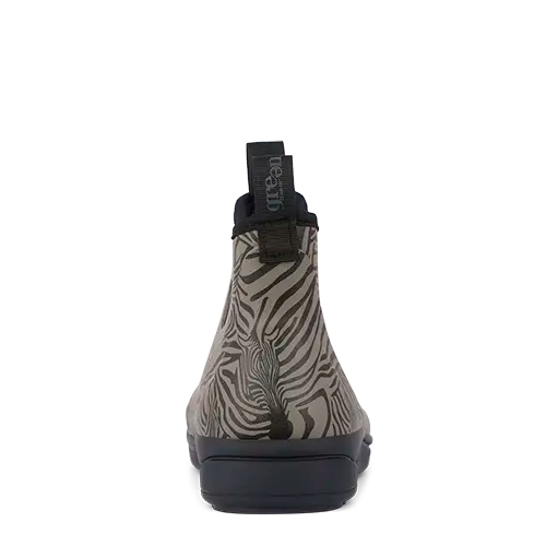 Superlækker Rain Rafaell - Zebra Taupe gummistøvle med en hidtil uset komfort. Det kraftige, bløde gummi holder vandet ude og dine fødder tørre. I gummistøvlen får du Green Comforts unikke 4,5 mm EnergySole™ Shape-indersål med indbygget svangstøtte og ekstra skum under hæl og forfod, som sikrer dig optimal stødabsorbering og komfort til gavn for hele din krop. Gummistøvlen er lavet på den rummelige H-læst, som giver god plads til dine fødder. Det bløde og elastiske neoprenfoer samt de to trækfaner gør det nemmere at træde i støvlen, som er dejlig at have på. Ydersålen er stødabsorberende med et godt vejgreb.
