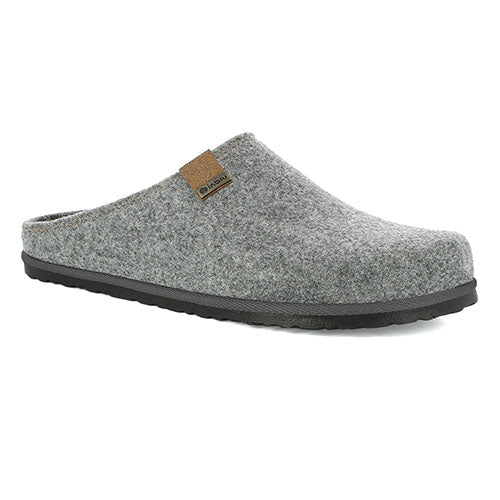 Lækker slippers-hjemmesko med en overdel af filt dekoreret med en ruskindslap med logo ved åbningen. Den udtagelige indersål beklædt med ruskind er støddæmpende, blød og komfortabel, og den fleksible ydersål har et fint fodfæste.