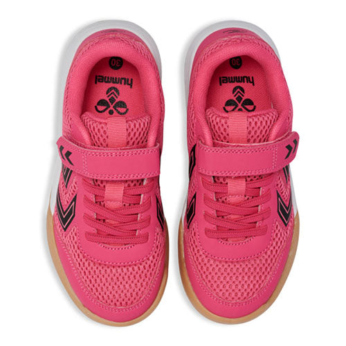 Lækker Multiplay Flex VC JR sko med en overdel af åndbart letvægtstekstil. Lukkes med en velcrorem, som kan klippes til, imens en ikkejusterbare elastiksnøre sørger for tilpasning til foden i løbet af dagen. Åbningen er polstret, og indersålen kan tages ud. EVA-mellemsålen er stødabsorberende, og TPR-ydersålen med sekskantsmønster giver et godt og multidirektionalt vejgreb. Den brede og stabile ydersål giver børn suveræn komfort og pasform.