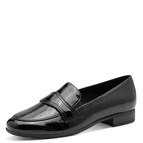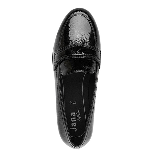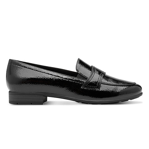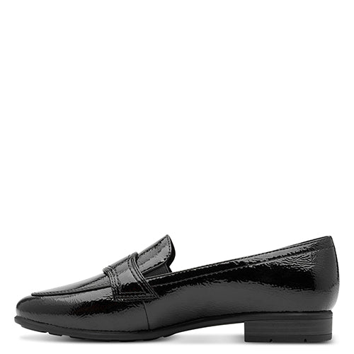 Flot loafer med en overdel af lakeret syntet foret med tekstil. Elastikkiler i åbningen gør det nemmere at træde i skoen, og de sørger for løbende tilpasning til foden i løbet af dagen. Med vidde H er der plads til den bredere fod, og Soft Line-indersålen er blød og komfortabel. Gummiydersålen er støddæmpende med et fint fodfæste. 100 % vegansk.