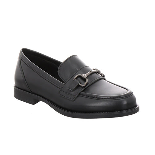 Dejlig loafer med en overdel af glat skind dekoreret med en metalbidsel over forfoden. Indersålen er beklædt med skind, og gummiydersålen er stødabsorberende med et fint fodfæste.