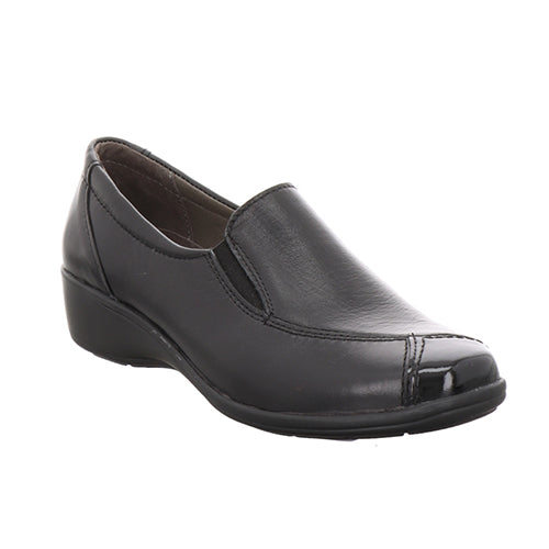 Komfortabel og let hyttesko med en overdel af glat skind med spændende syninger. Åbningen har elastik i siderne. Den udtagelige indersål beklædt med skind er komfortabel, og den fleksible ydersål er stødabsorberende.