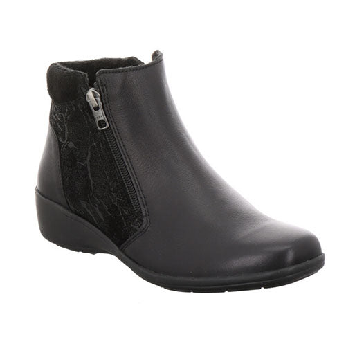 Lækker ankelstøvle med en overdel af glat skind og og ruskind med effekt, og den polstrede åbning er beklædt med ruskind. Støvlen har to lynlåse på siderne og et blødt, let fleecefoer. Den udtagelige indersål er komfortabel, og den meget fleksible ydersål med kilehæl og en gummibelægning under forfoden er stødabsorberende med et fint fodfæste.