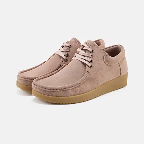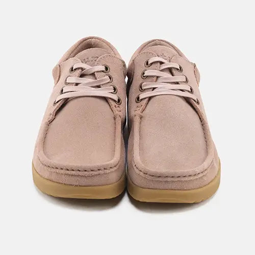 Lækker Anna sko med en overdel af ruskind. Skoen er blød, fleksibel og komfortabel og har bomuldssnørebånd samt mokkasinsyning på forfoden. Åbningen er polstret for øget komfort, og indvendig er skoen foret med Fibertech - Oeko-tex®. Den stødabsorberende ydersål er af ergonomisk naturgummi og giver et godt fodfæste. Designet i Danmark, produceret i Portugal.