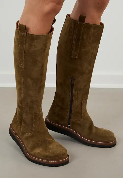 Lækker langskaftet Liv Luxe Suede støvle med en overdel af blødt ruskind foret med OnSteam®. Støvlen har en kort lynlås forneden på indersiden af anklen og en smal elastikkile foroven på indersiden samt trækfaner på siderne, så det er nemmere at trække støvlen på. Skafthøjden er 38 cm, og skaftvidden er 36 cm. Den udtagelige indersål lavet af naturlige kornfibre sikrer en behagelig gang hele dagen. Den patenterede ydersål af naturgummi er stødabsorberende med et godt fodfæste, imens en læderrand fuldender et smukt håndværk. Produceret i Portugal.