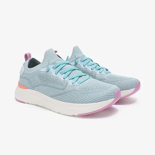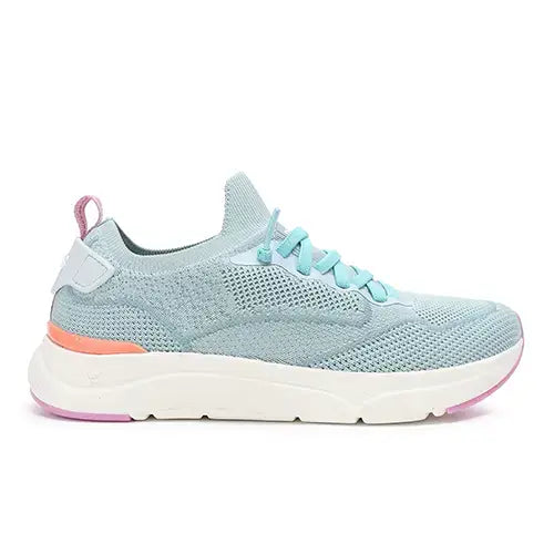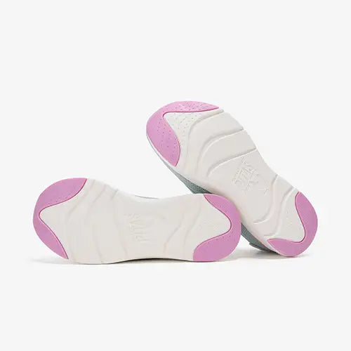 Dejlig og superlet Cue Woman sko med en overdel lavet af ét stykke blødt og åndbart netstof af 100 % genanvendt polyestertekstil fra PET-flasker. Der er syntetdetaljer ved snøren og på hælen. Skoen er en slip on-model med en elastiksnøre, som ikke skal bindes, og den elastiske åbning gør skoen nem at tage på. På hælen har skoen nogle smarte detaljer og en trækfane med refleksstribe. Den udtagelige Memory Foam-indersål er ekstremt blød, polstret og komfortabel, og den er støttende og støddæmpende. Den ultralette EVA-ydersål med gummibelægninger er stødabsorberende med et godt fodfæste.