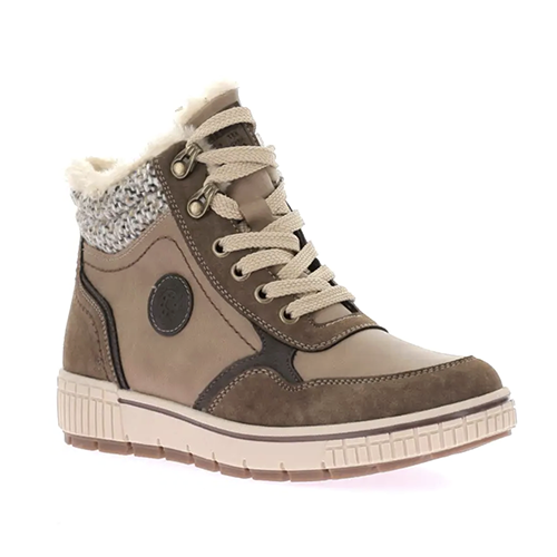 Lækker ankelstøvle med en overdel af syntet og tekstil med en polstret krave af strik. Støvlen justeres med snørebånd og lukkes med en lynlås på indersiden af anklen. Indvendig har støvlen let, varmt foer, og sammen med en vandafvisende Relife-Tex-membran holdes fødderne behagelige. Den bløde indersål er udstyret med Relifes SoftReflex-System, som via massageelementer i hælen aktiverer dine reflekszoner og med en stødabsorberende cylinder beskytter rygraden mod stød og dermed hjælper med at afslappe din krop. Den godt mønstrede gummiydersål er stødabsorberende med et godt fodfæste.