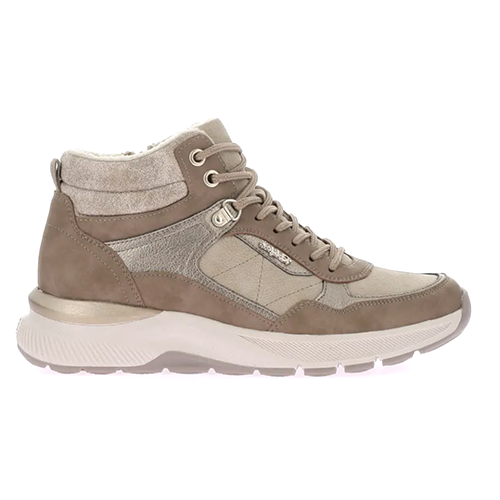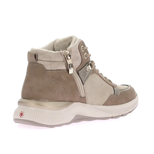 Lækker ankelstøvle med en overdel af syntet og tekstil med en polstret krave. Støvlen justeres med snørebånd og lukkes med en lynlås på indersiden af anklen, og en trækfane bagpå gør det nemt at træde i støvlen. Indvendig har støvlen let, lunt foer, og sammen med en vandafvisende Relife-Tex-membran holdes fødderne behagelige. Den bløde indersål er udstyret med Relifes SoftReflex-System, som via massageelementer i hælen aktiverer dine reflekszoner og med en stødabsorberende cylinder beskytter rygraden mod stød og dermed hjælper med at afslappe din krop. Den godt mønstrede gummiydersål er stødabsorberende med et godt fodfæste.