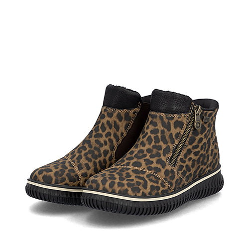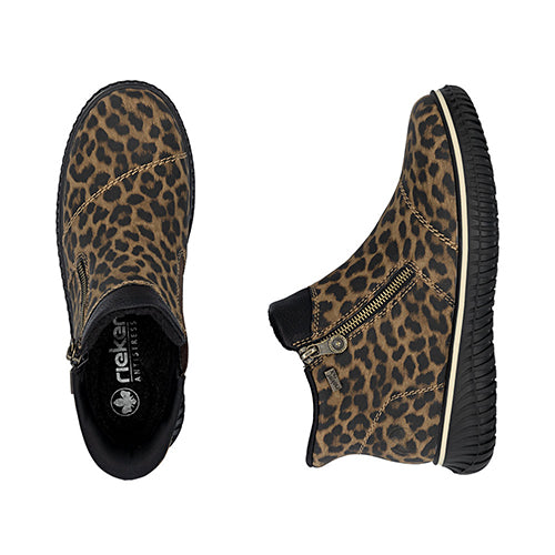 Smart Ready2GO støvle med en overdel af syntet med et elastikpanel på indersiden af anklen. Indvendig har støvlen et lunt foer, og sammen med en kraftigt vandafvisende RiekerTEX-membran holdes fødderne lune og tørre. Støvlen lukkes med en lynlås på ydersiden af anklen. Den udtagelige indersål er polstret, støddæmpende og komfortabel, og den fleksible gummiydersål er stødabsorberende med et godt fodfæste.