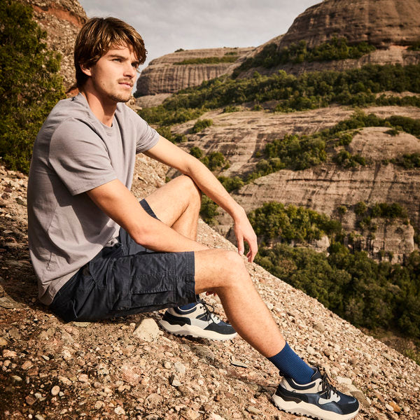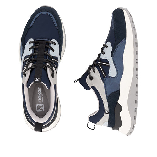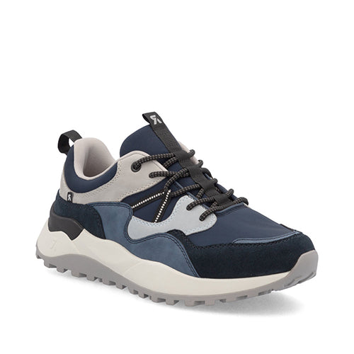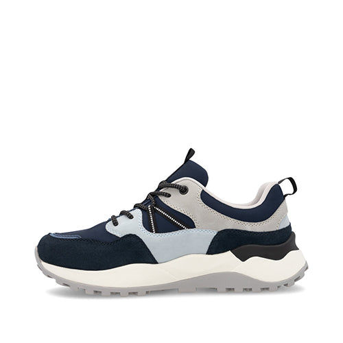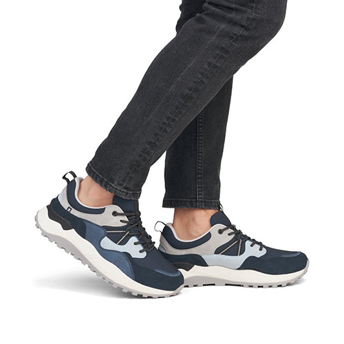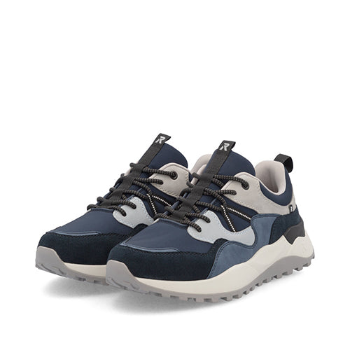 Kraftig sneaker med en spændende overdel af tekstil og syntet i en flot farvekombination. Skoen lukkes med snørebånd, og trækfaner på hæl og pløs gør det nemt at træde i skoen. Åbningen er polstret for øget komfort og støtte, og den bløde og polstrede indersål kan tages ud. Skoen er godt stødabsorberende med EVA-mellemsålen og den kraftige gummiydersål, som tilmed giver et godt vejgreb.