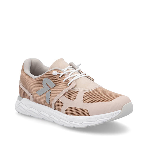 Lækker sko med en spændende overdel af tekstil og syntet, dekoreret med et reflekslogo på ydersiden. Skoen kan anvendes som en slip on-model med den ikke justerbare elastiksnøre, og den kan anvendes som en snøresko med det medfølgende snørebånd. Åbningen er godt polstret for øget komfort og beskyttelse, og den udtagelige Soft-indersål er polstret og komfortabel. Ydersålen med gummibelægninger under forfod og hæl er stødabsorberende med et godt fodfæste.