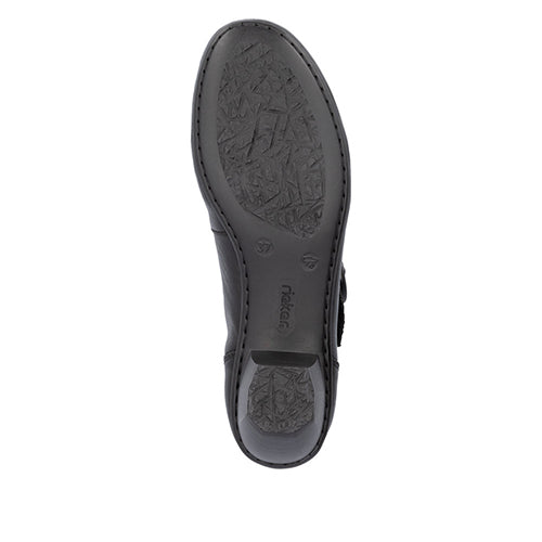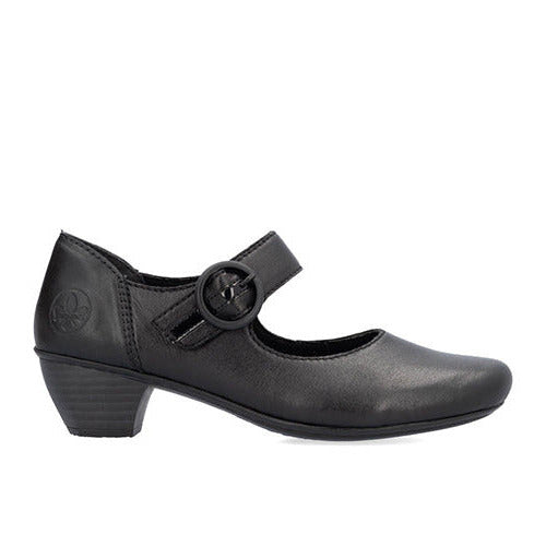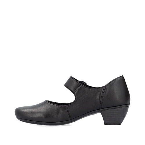 Sød sko i May Jane-stil med en overdel af glat skind og syntet. Skoen lukkes med en velcrorem med rundt pyntespænde over vristen. Indersålen er beklædt med skind, og hælhøjden på ca. 4,5 cm giver et flot look.