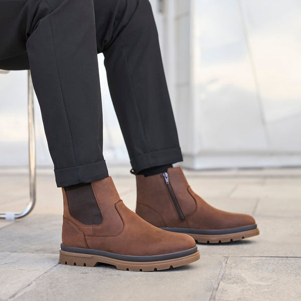 Lækker ankelstøvle med en overdel af nubuck og et elastikpanel på ydersiden. Støvlen lukkes med en lynlås på indersiden af anklen, og en trækfane bagpå gør det nemt at træde i støvlen. Med vidde H er der god plads om forfoden. Indvendig har støvlen et let, lunt foer, og den udtagelige indersål er komfortabel. Den robuste gummiydersål har et godt mønster og er stødabsorberende med et godt fodfæste.