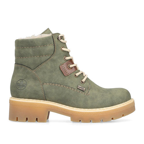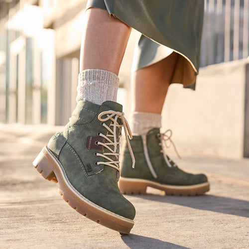 Dejlig vinterstøvle med en overdel af syntet. Indvendig har støvlen et varmt foer, og sammen med en kraftigt vandafvisende RiekerTEX-membran holdes fødderne varme og tørre. Støvlen justeres med snørebånd og lukkes med en lynlås på indersiden af anklen. Den udtagelige indersål er polstret, støddæmpende og komfortabel, og den kraftige gummiydersål er stødabsorberende med et godt vejgreb.