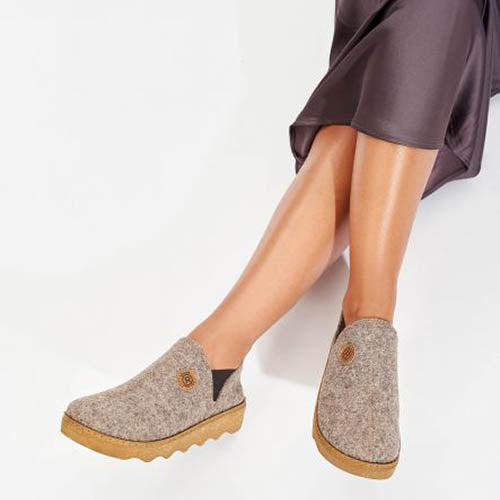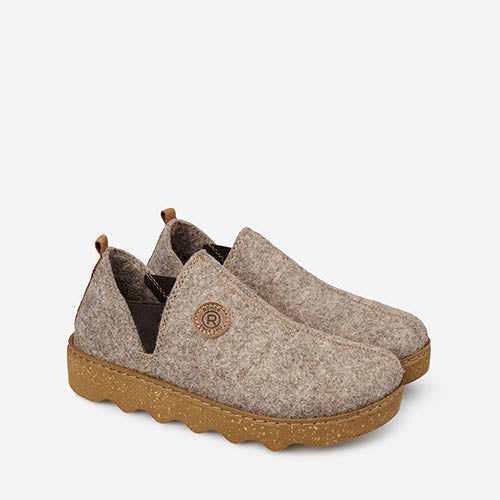 Lækker hjemmesko med en overdel af filt dekoreret med et påsyet rundt Rohde-logo på vristen samt en lille trækfane på hælen. Hælen er lukket, og elastikkiler på siderne gør det nemt at træde i hjemmeskoen. Den udtagelige indersål er polstret, støddæmpende og komfortabel, og den kraftige ydersål er stødabsorberende og fleksibel og giver med sit mønster et fint fodfæste.