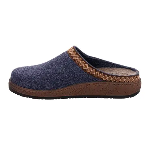 Lækker slippers-hjemmesko med en overdel af filt dekoreret med en mønstret bort om åbningen. Den udtagelige indersål er polstret, støddæmpende og komfortabel, mellemsålen er stødabsorberende, og den fleksible ydersål giver et fint fodfæste.