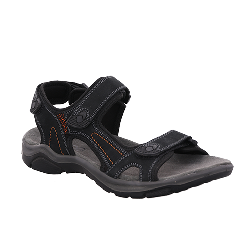 Lækker sandal med en overdel af nubuck på blødt tekstil. Sandalen lukkes med tre velcroremme (forfod, vrist og hæl) for optimal tilpasning til foden, og enden af hver velcrorem er gummibelagt for et bedre greb. Den polstrede dæksål er blød, støddæmpende og komfortabel, og den fleksible ydersål er stødabsorberende med et godt fodfæste.