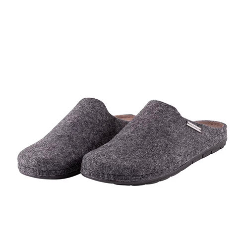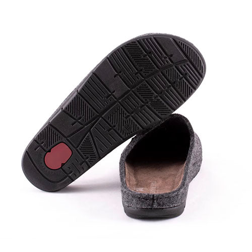 Lækker Samuel slippers-hjemmesko med en overdel af filt bestående af 70 % uld og 30 % polyester. Den ruskindsbeklædte dæksål har memory-skum, der former sig efter fodens konturer for en personlig pasform, som forbedres over tid, og den er polstret, støddæmpende og komfortabel. Den lette og robuste ydersål er fleksibel og stødabsorberende. Her får du en dejlig slip on-model, som med den naturlige uld holder dine fødder varme, samtidig med at de kan ånde, hvilket gør hjemmeskoene perfekte til brug året rundt.