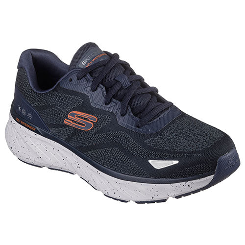 Vandtæt Relaxed Fit® Edgeride - Konzo sko med en overdel af meshtekstil med syntetdetaljer på bl.a. hælen og ved snørebåndet, som skoen lukkes med. Skoen har et vandtæt design med forseglede sømme, og indvendig giver det lette Skechers Breathe Easy Technology™-foer 100 % vandtæt beskyttelse og maksimal åndbarhed. Med Relaxed Fit® får du en rummelig og behagelig pasform ved tå og forfod. Den udtagelige Skechers Air-Cooled Memory Foam®-indersål er polstret og komfortabel, den velpolstrede mellemsål er støddæmpende, og den fleksible ydersål med gummibelægninger er stødabsorberende med godt greb. Kan maskinvaskes ved maks. 30 grader (husk at tage indersålen ud). Fremstillet af 100 % veganske materialer.