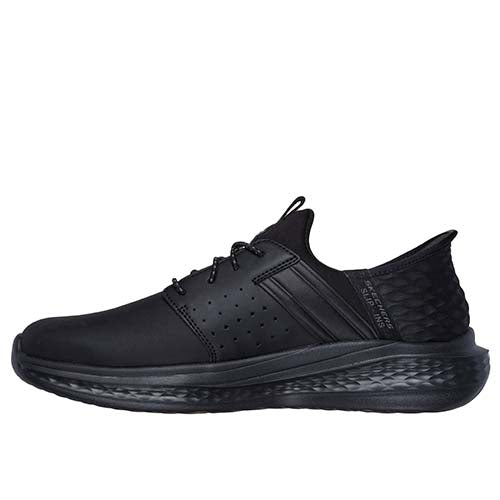 Lækker Slip-ins Slade - Zachary stretch-snøresko med en overdel af nubuck, tekstil og syntet med en ikkejusterbar elastiksnøre. Med Skechers Hands Free Slip-ins-teknologien kan du nemt træde i skoen uden at bukke dig eller bruge dine hænder. Designet med en komfortabel Heel Pillow, som former sig efter din hæl og holder din fod sikkert på plads. Med Relaxed Fit er skoen lidt mere rummelig. Den komfortable Air-Cooled Memory Foam-indersål med Goga Mat Arch-polstring for ekstra støtte er kulinfunderet for at hjælpe med at neutralisere potentiel lugt. Ydersålen er stødabsorberende med et fint fodfæste. Fås i visse halve størrelser.
