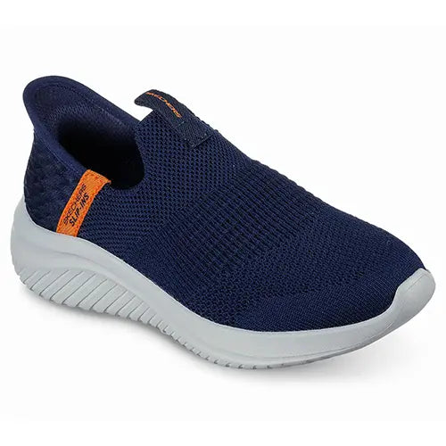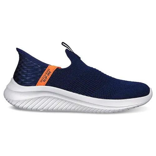Flot og farverig Slip-ins Ultra Flex 3.0 - Smooth Step sko kombinerer praktisk anvendelighed med et friskt og moderne udseende til skoledagen. Overdelen er af åndbart striktekstil og en trækfane på pløsen, og med Stretch Fit-designet tilpasser skoen sig til foden og føles som en sok. Med Slip-ins-teknologien får du en stabil hælkappe og skræddersyet polstring, der former sig efter din hæl og sikrer enestående stabilitet, og du behøver hverken bukke dig eller bruge dine hænder for at få skoen af og på - en perfekt løsning til børn, der gerne vil hurtigt ud og have det sjovt med vennerne. Den komfortable Air-Cooled Memory Foam-indersål giver støtte og stødabsorption, og den fleksible ydersål giver et fast vejgreb og efterlader ikke mærker på gulvet. Kan maskinvaskes ved maks. 30 grader.