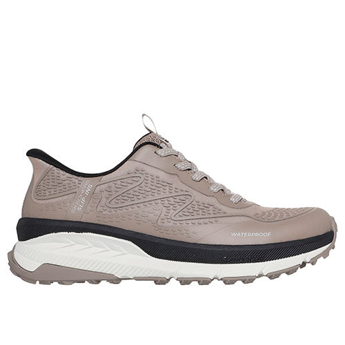 Vandtæt Slip-ins Switch Back - Mist sko med en overdel af monomeshtekstil og syntet med en ikkejusterbar No Tie Fit®-elastiksnøre, som aldrig går op. Med Slip-ins får du Skechers’ håndfrie teknologi, hvor du nemt kan træde i skoen uden at bruge dine hænder eller at bukke dig, og du får en fast hælkappe med en specialdesignet hælpude, der former sig til din hæl og dens naturlige kurve. Denne vandtætte sko er designet med forseglede sømme samt det lette Skechers Breathe Easy Technology-foer, som giver 100 % vandtæt beskyttelse samtidig med maksimal åndbarhed. Den bløde Skechers Air-Cooled Memory Foam®-komfortindersål er støddæmpende ligesom mellemsålen, og den fleksible ydersål med gummibelægninger er stødabsorberende med en høj trækkraft og et godt vejgreb. Fremstillet af 100 % veganske materialer.