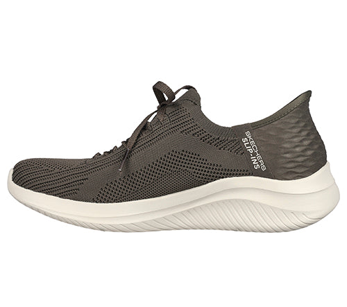 Lækker Slip-ins Ultra Flex 3.0 - Brilliant Path sko med en overdel af åndbart striktekstil med blød og elastisk Stretch Fit, så den tilpasser sig foden som en strømpe. Med Slip-ins får du Skechers’ håndfrie teknologi, hvor du nemt kan træde i skoen uden at bruge dine hænder eller at bukke dig, og du får en fast hælkappe med en specialdesignet hælpude, der former sig til din hæl og dens naturlige kurve. Skoen har en Air-Cooled Memory Foam-indersål, som former sig efter din fod og dæmper stød hele dagen, samt stødabsorberende Comfort Pillar-teknologi i mellem- og ydersålen. Den fleksible ydersål er stødabsorberende med et fint fodfæste. Her får du en afslappet og let sko, hvor komfort og bekvemmelighed er i top - perfekt til gåture og hverdagsbrug. Kan maskinvaskes ved maks. 30 grader. Er fremstillet af 100 % veganske materialer. Fås i halve størrelser.