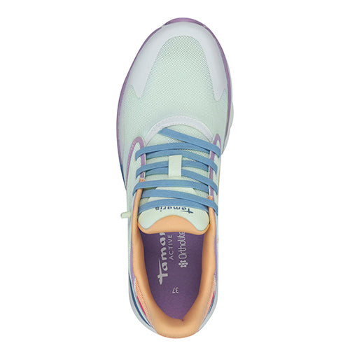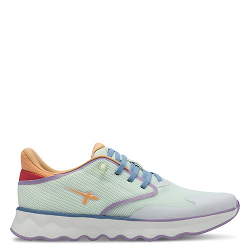 Superflot NOWANA sneaker i en iøjnefaldende farvekombination. Overdelen er af åndbart meshtekstil med syntetdetaljer. Skoen er en slip on-model med en elastisk snøre og en polstret hæl, så du nemt kan træde i skoen. Åbningen er polstret for øget komfort, og den udtagelige OrthoLite®-indersål er komfortabel. Den stødabsorberende ydersål har et spændende bølgedesign og giver et godt fodfæste. Dans gennem dagen i denne lette sko, som i øvrigt er vegansk.
