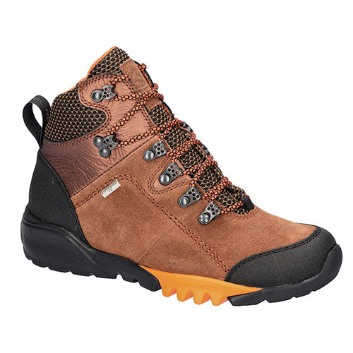 Lækker H-Amiata ankelstøvle med en overdel af nubuck, ruskind, glat skind og tekstil. Skoen lukkes med snørebånd, åbningen er polstret, og en trækfane på hælen gør det nemt at træde i støvlen. Indvendig har støvlen et åndbart tekstilfoer, og med en vandafvisende, vindtæt og åndbar Waldläufer-TEX-membran holdes fødderne behagelige og tørre. Med vidde H er der plads til den lidt bredere fod. Den udtagelige indersål er komfortabel, og den fleksible ydersål med Flexible System er stødabsorberende med et godt fodfæste. Fås i halve størrelser.