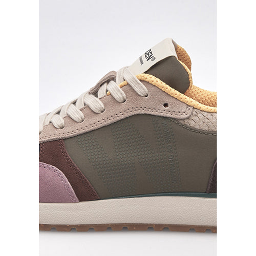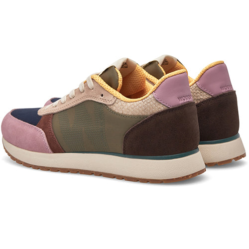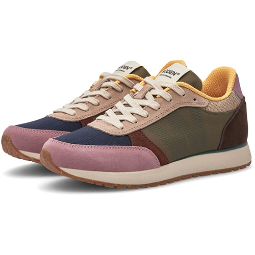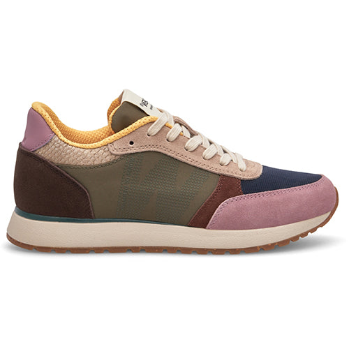 Flot Ronja sko med cool farvedetaljer og et sporty design. Overdelen er af tekstil, ruskind og glat skind med fiskelæderdetaljer ved åbningen. Alt læder er fra LWG-certificeret produktion. Skoen lukkes med snørebånd, og et stort mærke med logo på pløsen fungerer fint som trækfane, så det er nemmere at få skoen på. Åbningen er polstret for øget komfort. Den udtagelige indersål med Wodens karakteristiske kork er polstret og komfortabel, og blødt PU-skum gør indersålen både let og stødabsorberende, imens en Airflow-indersål sikrer åndbarhed og giver en ultrablød gangoplevelse hele dagen. Den formstøbte ydersål i EVA er beklædt med gummi, som giver et godt fodfæste.