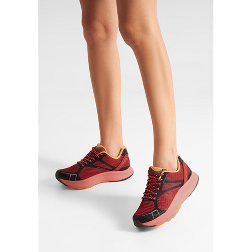 Superflot Sara sneaker med en overdel af genanvendt tekstil, syntet på alle slidflader og upcyclet fiskelæder med ASC-certificering på hælen, dekoreret med smarte refleksdetaljer. Skoen lukkes med snørebånd, og åbningen er polstret for øget komfort. Den udtagelige indersål med Woden Air Flow System™, Wodens karakteristiske kork samt blødt PU-skum er åndbar, polstret, støddæmpende og komfortabel med en ultrablød gangoplevelse hele dagen, og komforten understreges af den stødabsorberende letvægtsmellemsål støbt i EVA. Ydersålen er bygget på Wodens e-motion-sål for øget fleksibilitet og bløde bevægelser hele dagen, og gummibelægninger med 10 % genanvendt gummi i et godt mønster giver et godt fodfæste. Letvægtskonstruktionen sikrer komfort hele dagen og suppleres af Wodens Natural Soft Technology™.