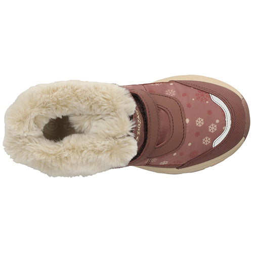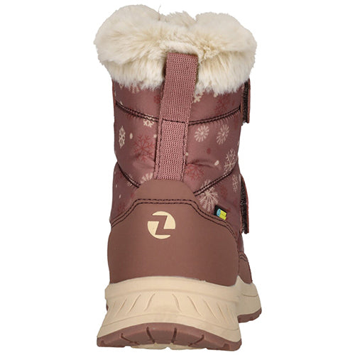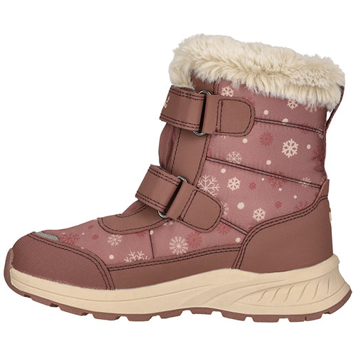 Dejlig og vandtæt Aray Kids Boot WP støvle med en vandafvisende overdel af fluorfri Bionic-Finish® Eco-behandlet tekstil og syntet med refleksdetaljer på snuden for øget synlighed. Støvlen lukkes med to velcroremme, og en trækfane bagpå gør det nemt at træde i støvlen. Indvendig har støvlen et let, lunt foer og et blødt plysfoer i kraven og om åbningen, og sammen med en åndbar og vandtæt Dry Base-membran holdes fødderne lune og tørre. Den komfortable indersål kan tages ud, og den godt mønstrede gummiydersål er stødabsorberende med et godt fodfæste.